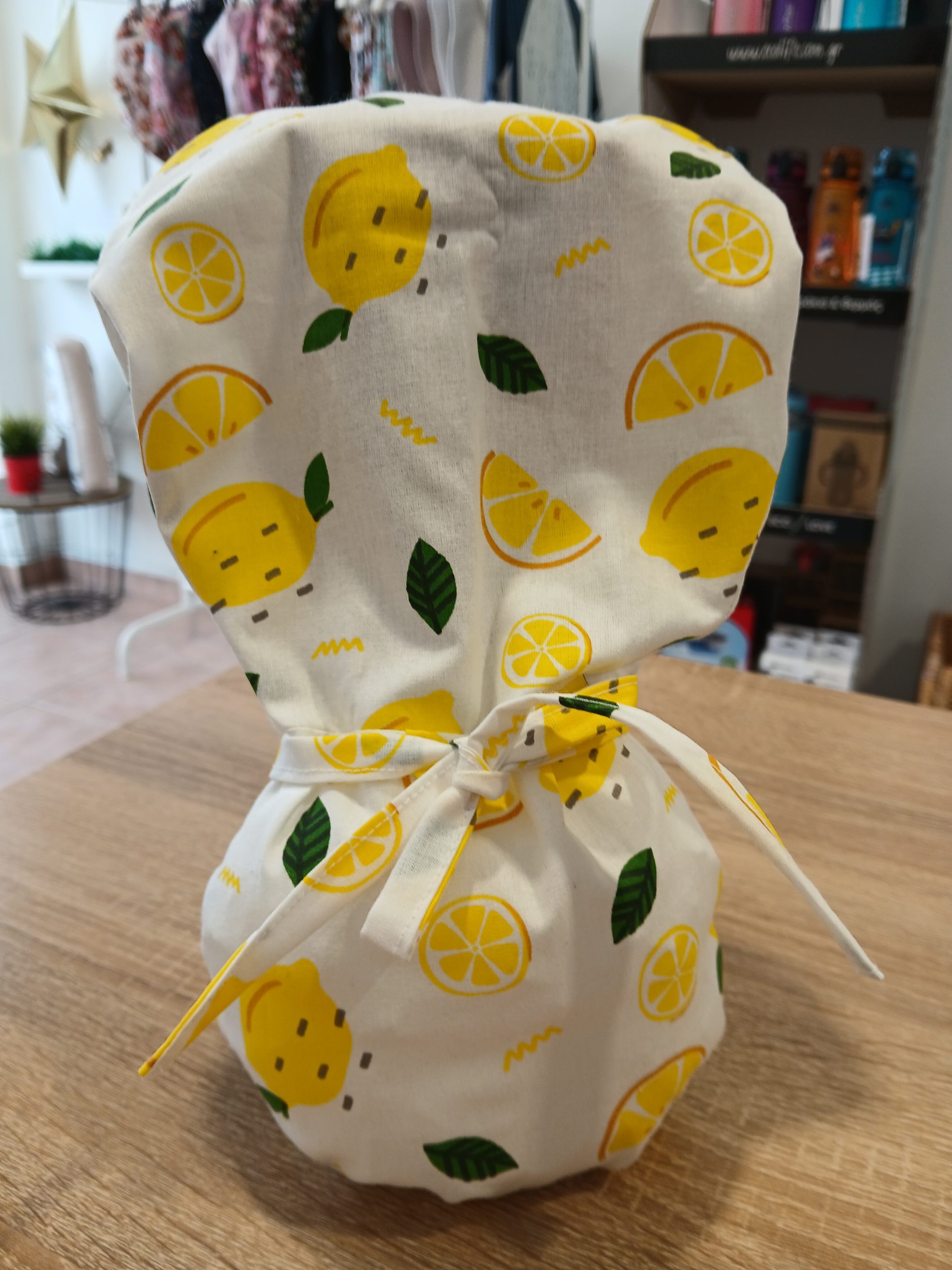 4. Χειροποίητο σκουφάκι Ponytail “Λεμόνια” για επαγγελματίες