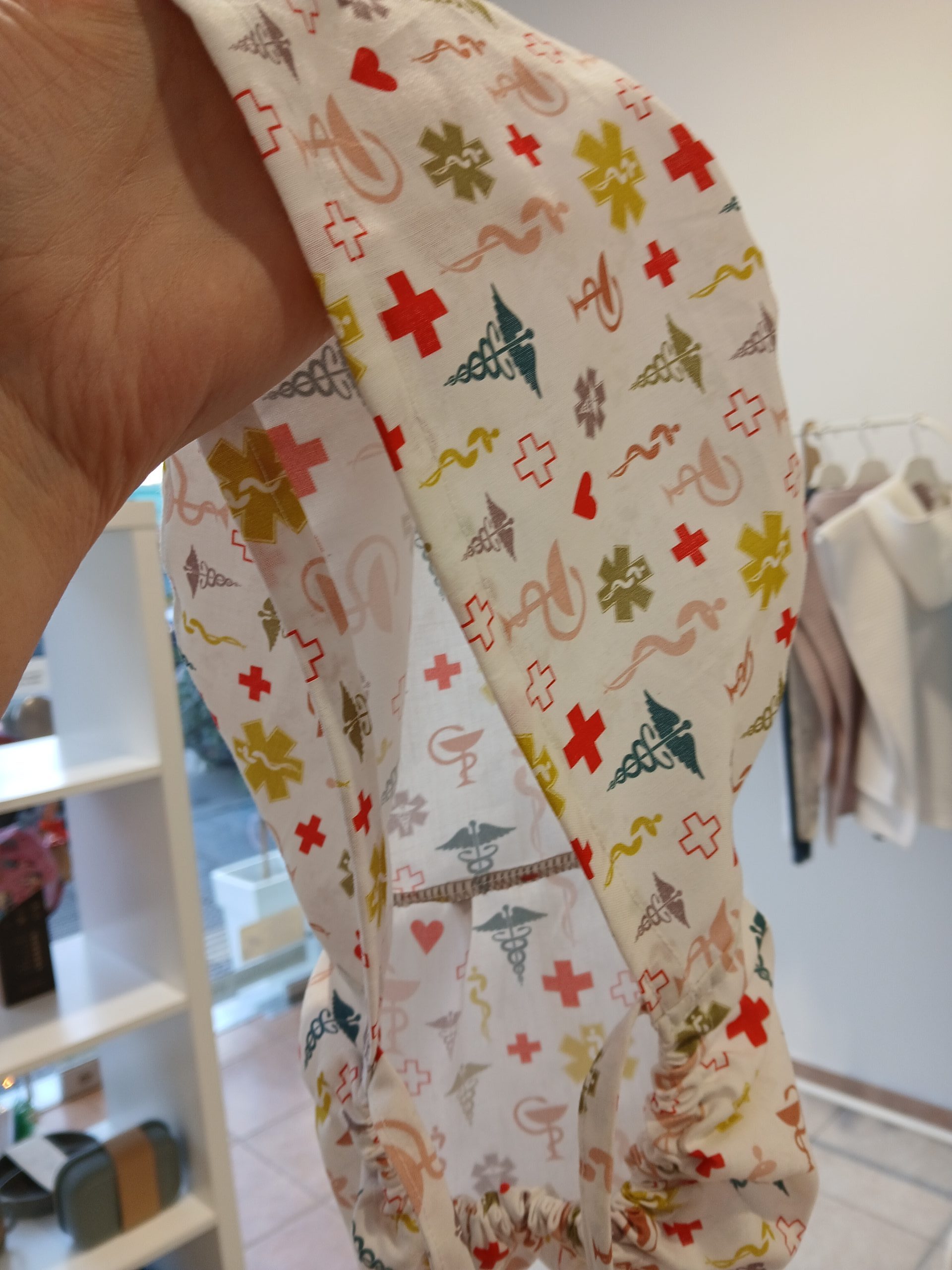 4. Χειροποίητο σκουφάκι Ponytail “Pharmacy Symbols” για επαγγελματίες