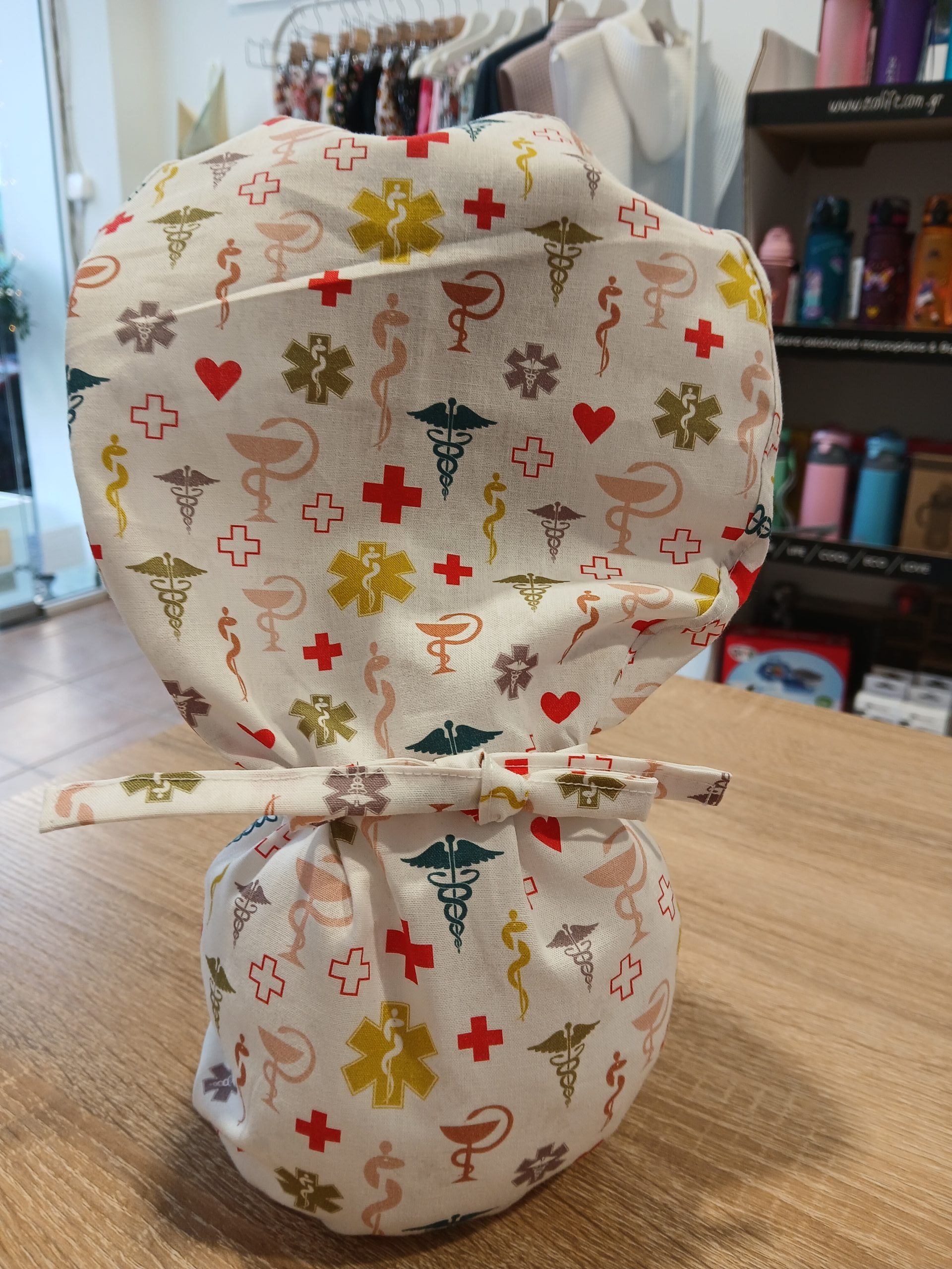 Χειροποίητο σκουφάκι Ponytail “Pharmacy Symbols” για επαγγελματίες