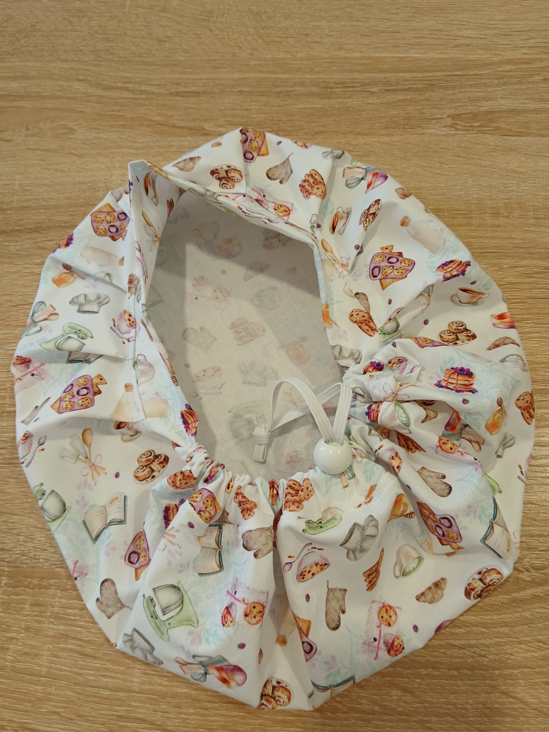 Κατασκευασμένο από 100% βαμβακερά υφάσματα το σκουφάκι επιτρέπει πολύωρη χρήση χωρίς ενοχλήσεις, αποτρέποντας την επαφή των μαλλιών με τρόφιμα ή επιφάνειες εργασίας.